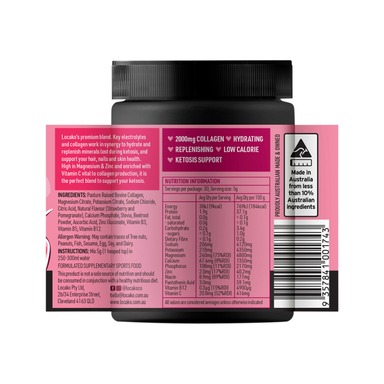 Product Information Locako's premium blend of key electrolytes and collagen work in synergy to hydrate and replenish minerals lost during ketos...