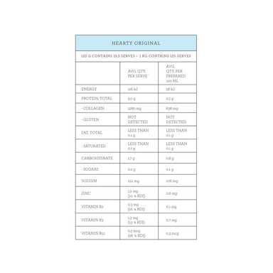 Beef Bone Broth Hearty Original is naturally nourishing with a source of protein and collagen, Zinc, and B vitamins to support immunity, energy, a...