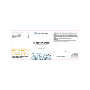 Product Information Orthoplex Collagen Clinical combines vitamin C with four, specialised, low molecular weight collagen peptides (hydrolysed c...