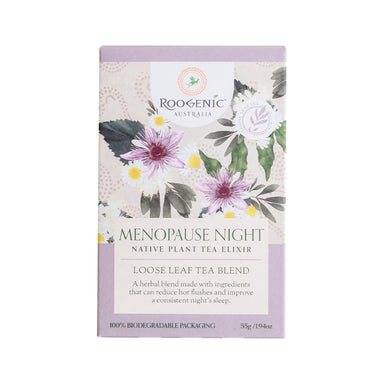 Roogenic Menopause Night Tea is a soothing blend designed by naturopaths with ingredients that can reduce the discomfort of menopausal symptoms tha...