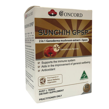 Contains 2 in 1 Ganoderma Mushroom Extract + SporeCONCORD SUNCHIH GPSP is formulated to support your immune system and promotes general wellbeing....