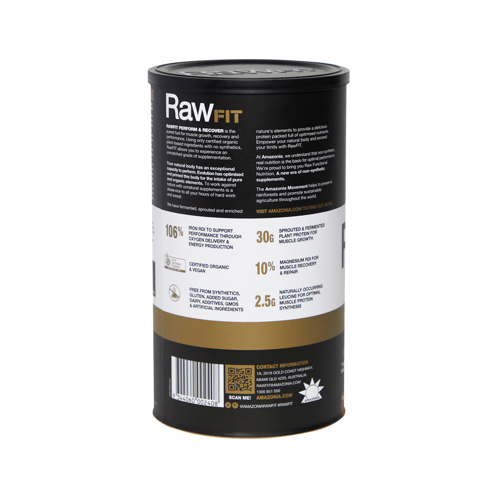 RawFIT Plant Protein Perform & Recover is a premium, plant-based formula that supports muscle growth, recovery and repair to help you perform at your best. 30g sprouted and fermented plant protein provides a complete amino acid profile and promotes muscle gain.