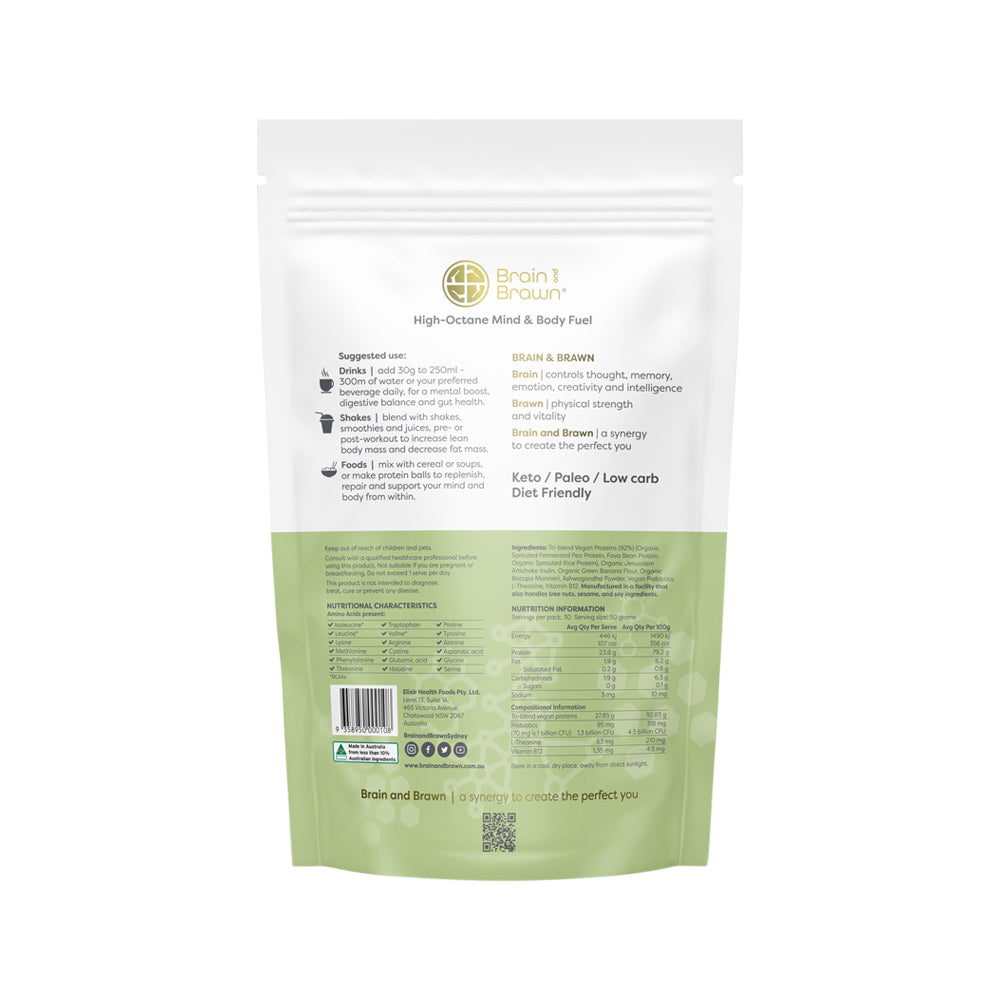 Brain Brawn Org Protein Plant Vegan Unflavoured 900g