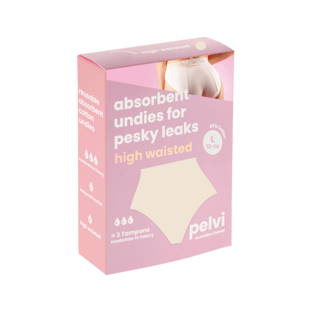 Our best seller, the Pelvi Full Brief, will give you maximum leakproof protection all day or overnight. A high waist cut finished with a soft lace band. Pelvi leakproof underwear combines soft comfortable fabrics with built-in water resistant absorbency liners to give you maximum leakproof protection that actually works - all day.